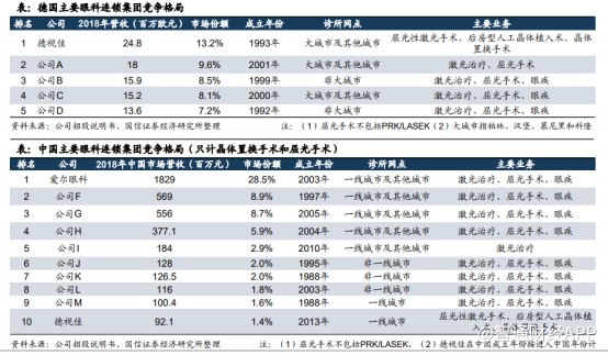 德视佳2019年在香港上市,主营业务为眼科医疗服务,在德国市场市占率第一,中国市场(只计晶体置换手术和屈光手术)第十。