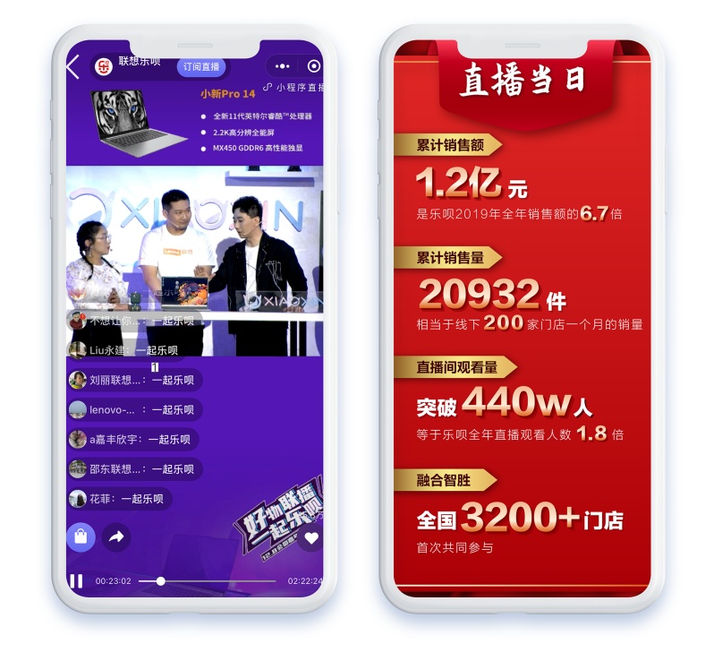 作为腾讯生态下的头部服务商,微盟在年初率先接入微信小程序直播,目前已为林清轩、联想“乐呗”、梦洁等打通直播到卖货的闭环。其中,12月8日,联想“乐呗”在微盟小程序直播的协助下,吸引了400多万人围观,为联想“乐呗”小程序商城带来了1.2亿的销售额,带货成绩堪比头部主播。