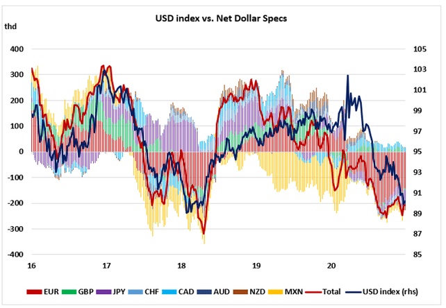 根据美国商品期货委员会(CFTC),投资者仍看空美元。尽管该委员会的数据仅覆盖了场外外汇市场成交量很小的一部分,但它提供给人们一点线索。因此,如果美元在未来几周开始升值,可能导致大量空头回补。