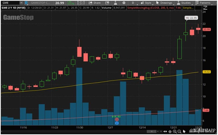 游戏驿站是一家消费电子产品和游戏商品零售商,总部位于德克萨斯州,在10个国家拥有超过5500家零售店。游戏驿站还是《财富》500强公司。该公司股价年初至今上涨近250%。