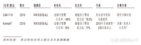 智通财经APP了解到,CAR-T-19对应的适应症为B细胞急性淋巴细胞白血病("B-ALL")及B细胞淋巴癌。