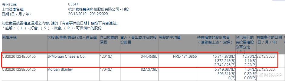 智通财经APP获悉,香港联交所最新资料显示,12月22日,摩根大通减持泰格医药(03347)34.445万股,每股作价171.6855港元,总金额约为5913.71万港元。减持后最新持股数目约为1571.49万股,最新持股比例为12.76%。