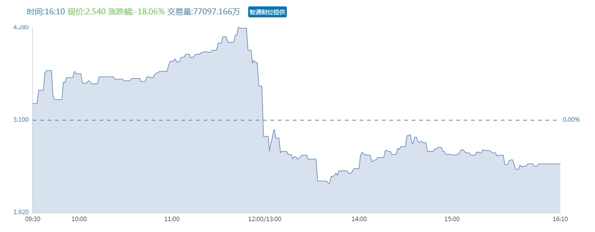 今日早盘,五菱汽车高开高走,盘中一度涨超40%,不料在11点47分的时候,股价开始跳水,随后一路走低,截至收盘其股价大跌18.06%至2.54港元,振幅达到71.94%,换手率达到了25.07%,市值为78.11亿港元。如此过山车的走势,让一些高位进场的股民们纷纷发出“天台见”的哀嚎。