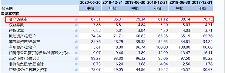 而五菱汽车的经营活动现金流量自2016年开始就呈负增长的状态了:2016-2020年上半年,其经营活动现金流量分别为-48.04亿元、-17.43亿元、-32.74亿元、-67.73亿元、-39.03亿元。 此外,资产负债率方面,五菱汽车也常年维持在80%附近,体现一定的资金压力。据财务数据显示,2018年至2020年上半年,该公司的资产负债率分别高达81.12%、85.31%、87.31%。