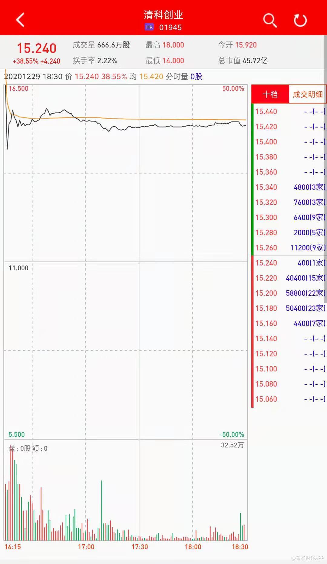 智通财经APP获悉,清科创业(01945)将于12月30日(周三)在香港挂牌,截至暗盘收盘,利弗莫尔证券资料显示其暗盘报价15.24港元,较招股价11港元涨38.55%。每手400股,不计手续费,每手赚1696港元。