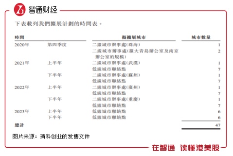 清科创业将所得款项净额39.4%将用于扩大在中国的地理覆盖范围,其中22.3%的份额扩展至地方股权投资活动十分活跃的中国七座主要二线城市,包括广州、珠海、武汉、青岛、苏州、南京及重庆,再将17.1%份额将用于扩展至约40座更低线城市。目前该公司已在北京、深圳及上海等九个城市建立业务覆盖。