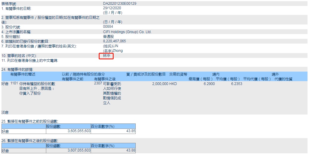 公开资料显示,作为公司大股东的林氏家族于今年多次增持旭辉股票。尤其是进入下半年,董事局主席林中以及林氏家族先是在8月通过以股代息增持逾4500万股,后又在9月单月增持1200万股,充分体现出创始人对于公司发展的信心。