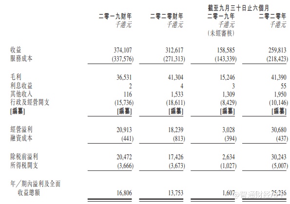 于2019财年、2020财年及截至2020年9月30日止六个月,公司期内溢利分别为1680.06万港元、1375.3万港元及2523.6万港元。