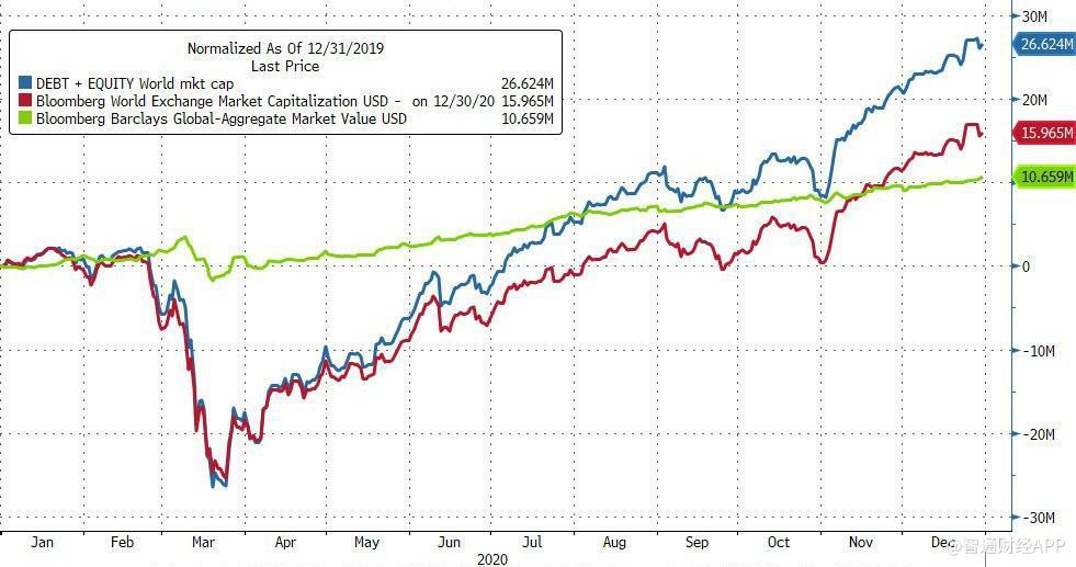 智通财经APP获悉,2020年全球股市新增市值约15万亿美元,且在历史上首次总市值突破100万亿美元。
