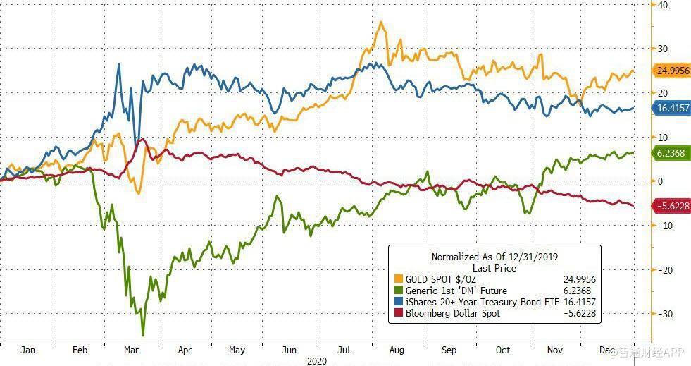 2020年美元在各资产类别中“脱颖而出”(实在跌的太惨),债券和金银表现优异。