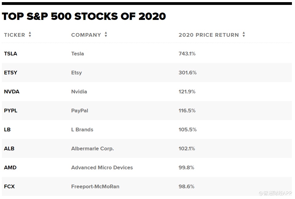 智通财经APP获悉,标准普尔500指数以16.26%的年内涨幅结束整个2020年,且在周四(12月31日)收盘时创下历史新高。