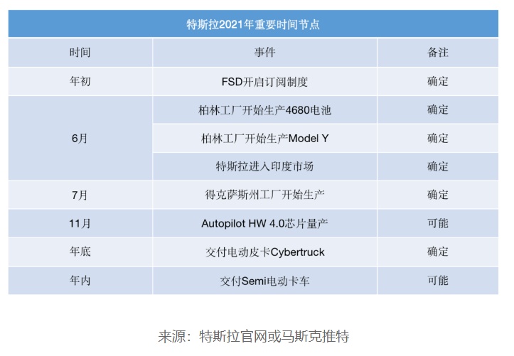 2021年,特斯拉为自己制定了不少“小目标”。马斯克表示,2021年特斯拉将进入印度市场。下半年,特斯拉将推出Model S Plaid三电机高性能版,新车将配备全新结构电池组,包括全新的4680型号锂电池。同时特斯拉柏林工厂将大规模生产Model Y。与此同时,位于得克萨斯州的全新超级工厂也将迎来投产。