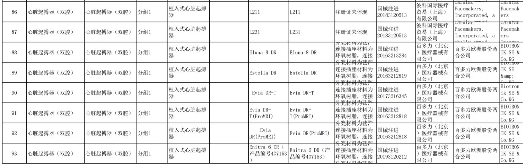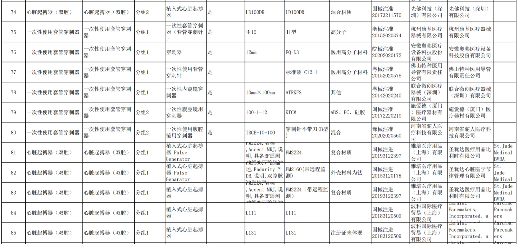 心脏起搏器(双腔)拟中选械企包括雅培、波科、乐普等;