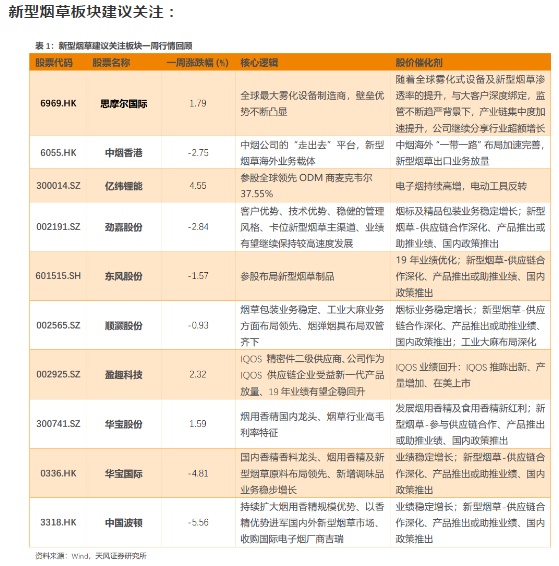 风险提示:新型烟草政策变动/技术开发风险,销售/企业发展不及预期。