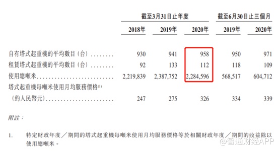 另外,IPO之后,达丰设备拟将募资所得的资金用于购买塔式起重机,尤其是起重能力高于200吨米的塔式起重机,预期购置的塔式起重机的单价将介于每吨米5000元至8000元,借此抢占更多市场份额。根据公司规划,公司将在截至2021年3月31日止三个月购买30台塔式起重机,并在2022年及2023年3月31日止的两个年度里购买90台塔式起重机,达丰设备未来三年的塔机和起重吨米数的增长速度将大幅提升,可实现短期业绩翻番。
