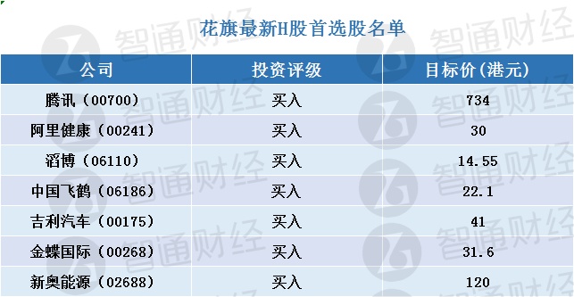 花旗2021年H股首选股名单:腾讯(00700)阿里健康(00241)等上榜