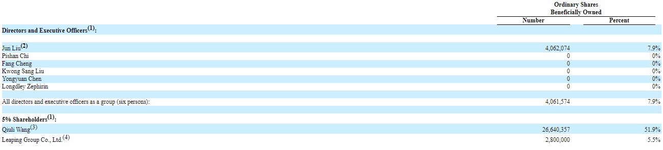 公司总裁兼董事长Jun Liu持有公司7.9%的股权。