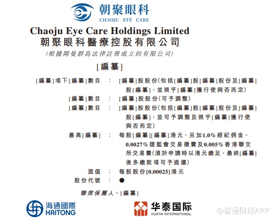 智通财经APP获悉,据港交所1月4日披露,朝聚眼科医疗控股有限公司(以下简称“朝聚眼科”)向港交所主板递交上市申请,海通国际和华泰国际为其联席保荐人。