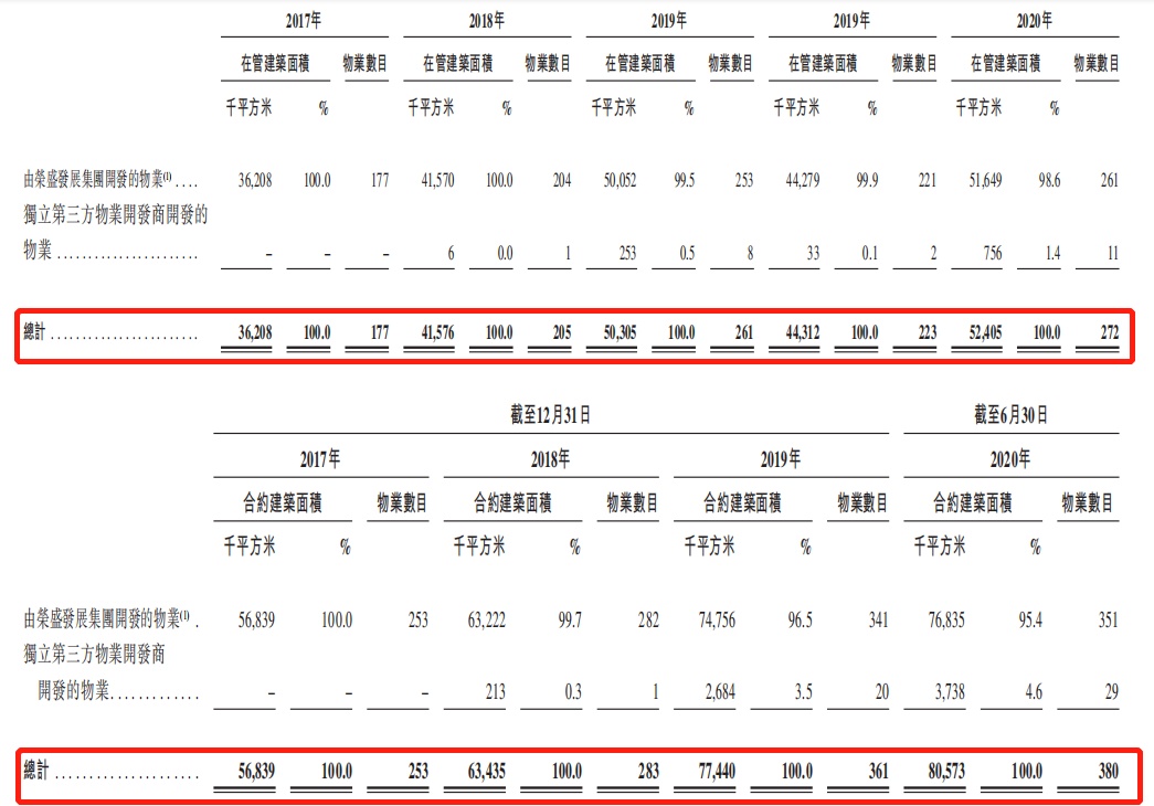 据招股书显示,荣万家通过自身积累的丰富行业经验和市场知名度,第三方业务拓展能力正在迅速提升,截至最后实际可行日期,荣万家取得的独立第三方地产开发商开发的项目管理权的总在管面积约为91.71万平方米,总合约建筑面积为约430万平方米。同时,还拥有约为5020万平方米的框架协议及战略合作协议项下拟交付管理物业建筑面积。
