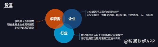 对于企业,平台不仅能更快速响应企业灵活用工的需求,而且能向企业输出一整套灵活用工解决方案,包括流程、人、系统等。