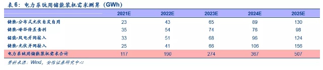 到2025年,全球发/用电侧的储能需求将达到507GWh。从发电侧和用电侧,我们对全球未来几年储能市场的空间进行了详细测算。用电侧我们仅考虑分布式光伏自发自用(含户用光充储)和峰谷电价差套利,发电侧我们仅考虑风电和光伏的并网接入,基于我们前期外发深度报告《电化学储能专题报告:千亿赛道冉冉升起,中国企业大有可为》中的相关分析和假设,测算到2025年全球电力系统发/用电端的储能需求就将达到507GWh,而风电/光伏的并网储能需求则将达到280GWh。