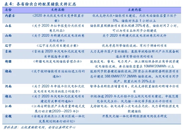 政策频出,缺乏盈利模式是新能源电站配套储能的痛点。2020年5月19日,国家能源局发布《关于建立健全清洁能源消纳长效机制的指导意见(征求意见稿)》,提出鼓励推动电储能建设和参与,以此促进清洁能源高质量发展。截止目前11个省份陆续出台了鼓励新能源电站配套储能的文件,其中湖南、山西等省份建议风电、光伏等新能源发电配置20%储能。由于电力市场制度的不完善,用户侧配置储能的自发性不强,因此当前储能的配置主要集中在发电侧。然而,由于目前发电侧储能不参与电网调度,盈利模式不清晰,因此配套储能的成本基本由电站业主方承担,盈利模式的缺乏和高昂的储能成本成为解决消纳问题的痛点。