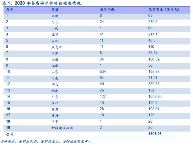 2020年平价项目申报侧面印证国内平价时代需求较为乐观。国家发改委和能源局于2020年8月发布了《关于公布2020年风电、光伏发电平价上网项目的通知》,通知中公布了2020年光伏平价项目为33.05GW且项目应于2021年底前并网。此外,未纳入2020年竞价补贴的7.54GW光伏项目可以自愿转为平价。各省申报平价项目热情高涨,侧面反映出当前投资成本下光伏平价项目的收益率较为可观,2020年平价项目预计将成为2021年光伏装机的最主要来源。