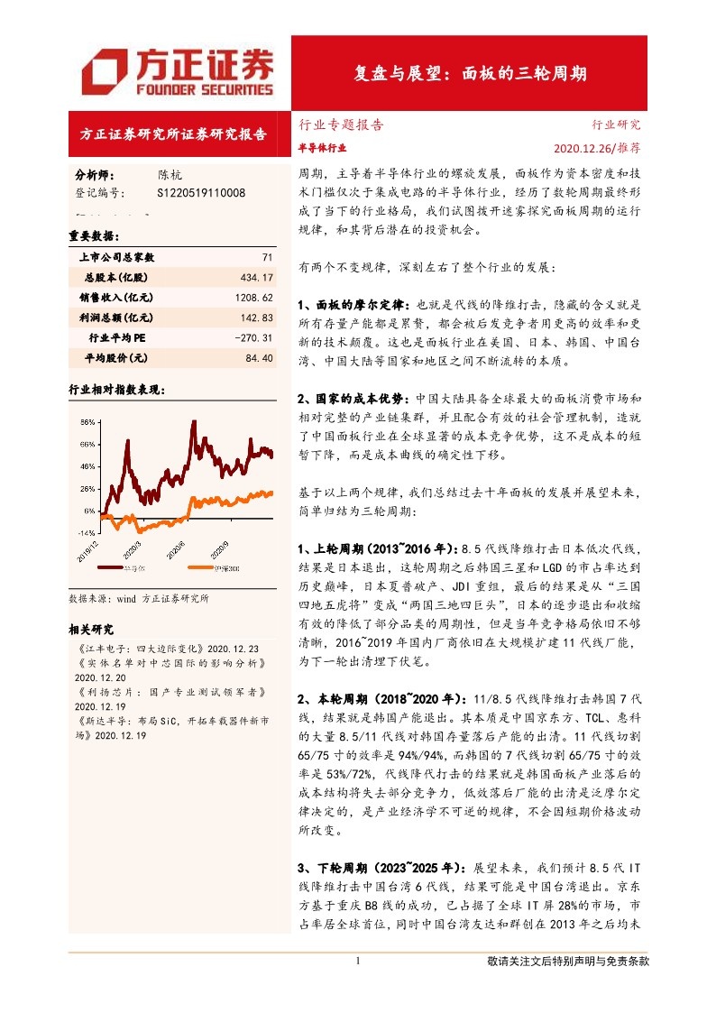 基于以上两个规律,我们总结过去十年面板的发展并展望未来,简单归结为三轮周期: