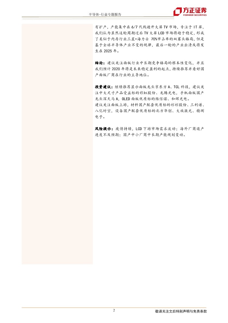风险提示:卫生事件持续,LCD下游市场需求波动;海外厂商退产进度不及预期;国产中小厂商中长期产能规划变动。