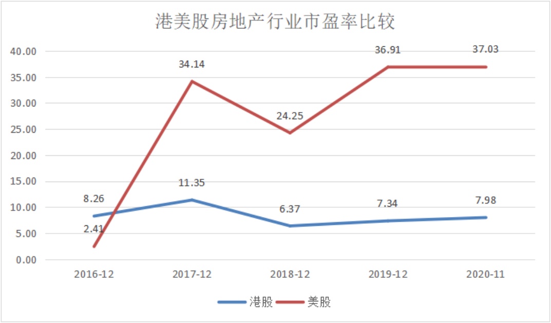 仅从市场对行业的估值水平来看,美股房企平均市盈率是港股的3倍以上。选择在美股上市的房企有更大可能获得比在港股更高的估值水平。智通财经APP了解到,今年3月以来,美股房地产行业市盈率不断升高,截至2020年12月,行业平均市盈率达到40.4,创下历史新高。