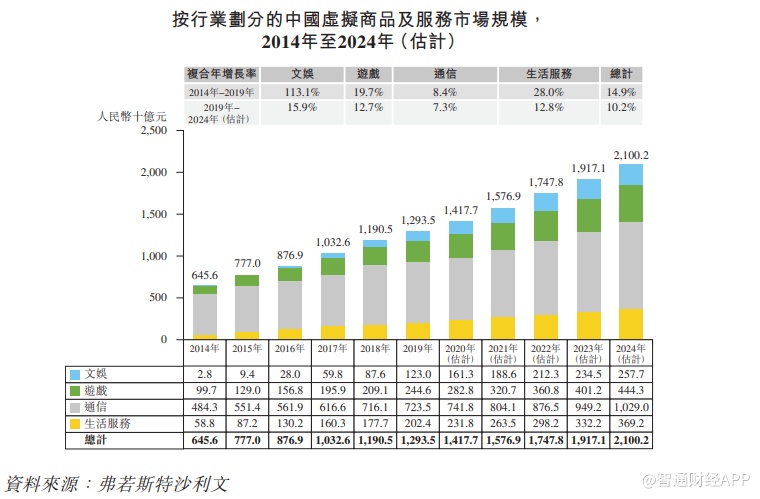 据弗若斯特沙利文数据显示,若以2019年收入计,福禄控股是中国最大的第三方虚拟商品及服务平台运营商,市场份额为7.7%。与此同时,福禄亦是中国收入最大的第三方文娱商品、游戏商品及服务供应商,市场份额分别为11.7%、11.8%。
