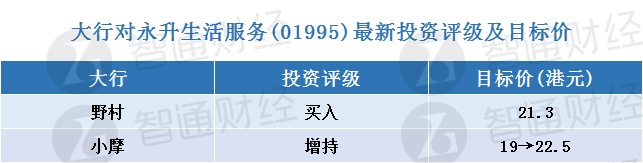 二、大行对永升生活服务(01995)最新投资评级及目标价