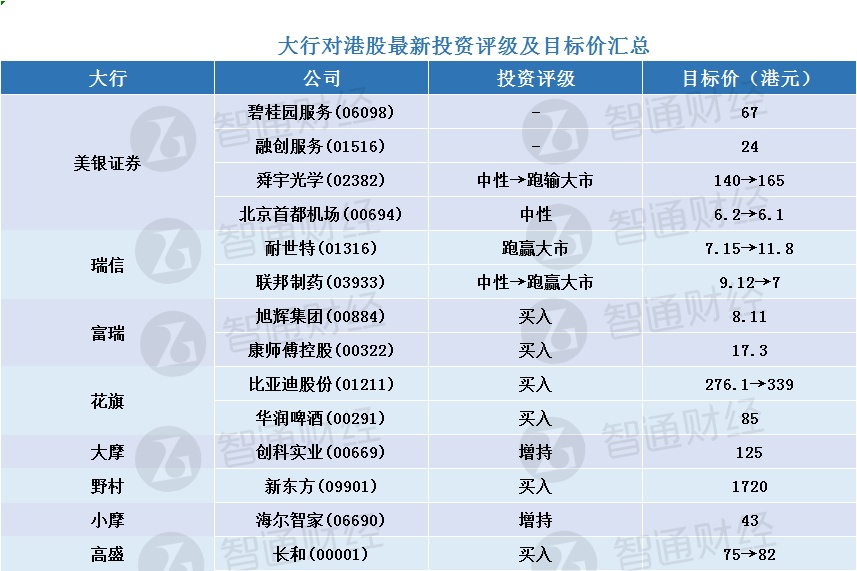 智通每日大行研报汇总︱12月31日