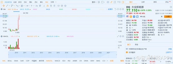 至此,整个新能源板块的个股也就“涨声不断”了,作为光伏行业的原材料,硅料企业也在此次大涨的行列中。在2021年首周,大全新能源(DQ.US)股价便大涨34.43%。