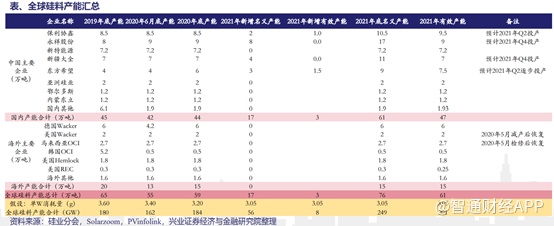 倘若2021年光伏组件生产技术进一步提高,HJT或Topcon技术加速布局,导致光伏转化率提高,度电成本继续下降,全球对光伏的需求或将进一步提升,届时硅料将严重不足。