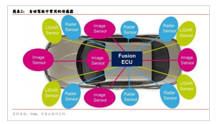 感知、决策与控制是自动驾驶的三个环节,感知环节用来采集周围环境的基本信息,是自动驾驶的基础。自动驾驶汽车依托传感器实现对于周围环境的感知。针对不同应用等级,对于传感器的需求不同,常见的传感器包括:摄像头、超声波雷达、毫米波雷达和激光雷达。
