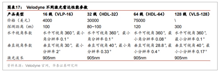 Velodyne于2018年发布128线激光雷达,产品编号VLS-128,代表当时最为先进的机械式激光雷达。该产品采用128线束,探测距离提升至300米,比原有64线产品提升两倍,分辨率提升了4倍。Velodyne称该产品为L5级别自动驾驶而开发。