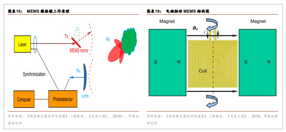 根据咨询机构麦姆斯的定义,所谓“混合固态”是指对采用半导体“微动”器件——MEMS扫描镜在微观尺度上实现LiDAR发射端的激光扫描方式。混合固态激光雷达相比于机械式激光雷达,其优点体现为,采用MEMS微振镜替代了机械式产品中的宏观扫描仪,利用MEMS微振镜可将机械部件集成到单个芯片,并借助半导体工艺生产,降低成本和产品体积。