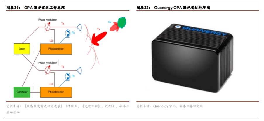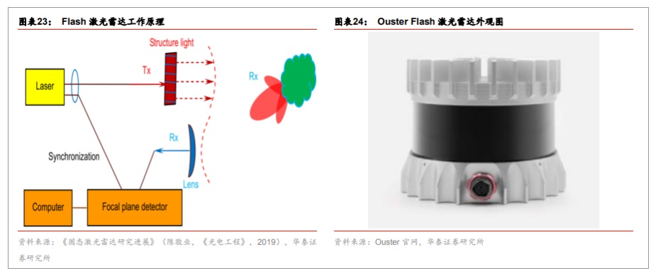 固态激光雷达是指完全没有移动部件的激光雷达,根据技术路线,主要包括光相控阵(OPA)和Flash两种。相比于前两种,固态激光雷达的优点包括:数据采集速度快、分辨率高,对于温度和振动的适应性强,通过波束控制,探测点可以任意分布。