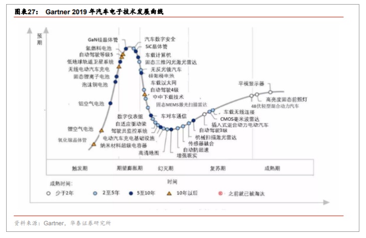 Gartner2019年汽车电子技术成熟度曲线显示,以MEMS激光雷达为代表自动驾驶硬件在经历触发期和期望膨胀期后,产业链逐渐走向成熟。Gartner预测,从2020年起具有L3级自主驾驶硬件能力的车辆将被广泛生产,光探测和测距(LiDAR)等传感器技术主要用于实现自动驾驶,将是未来5年内汽车产业普及的元器件,助力自动驾驶成熟。今年以来,我们发现激光雷达产业正在发生积极的变化,2021年行业或迎来加速发展期。