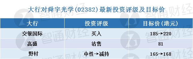 二、大行对舜宇光学(02382)最新投资评级及目标价