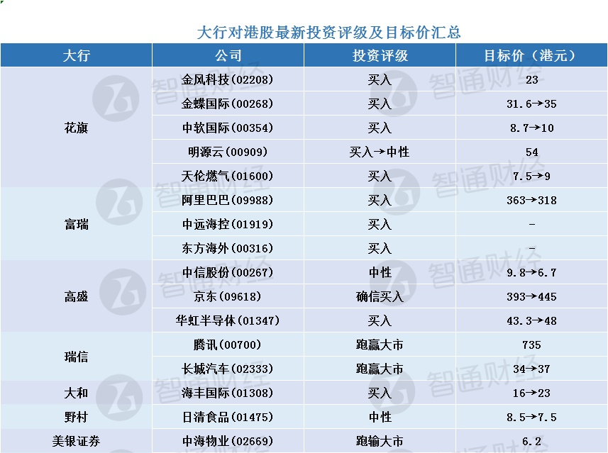 五、大行对旭辉控股(00884)最新投资评级及目标价