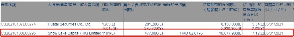 智通财经APP获悉,香港联交所最新资料显示,1月5日,Snow Lake Capital (HK) Limited增持金科服务(09666)47.79万股,每股作价62.6776港元,总金额约为2995.36万港元。增持后最新持股数目为1087.79万股,最新持股比例为7.12%。