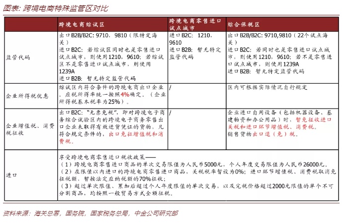 海关特殊监管区在东南沿海更为集中,行业监管更成熟。从数量上看,零售进口试点城市和跨境电商综合试验区在内陆省份平均为1-3个,而东南沿海省份多达6-13个。交易更为密集的地区,政策规范和鼓励也更有倾向性。