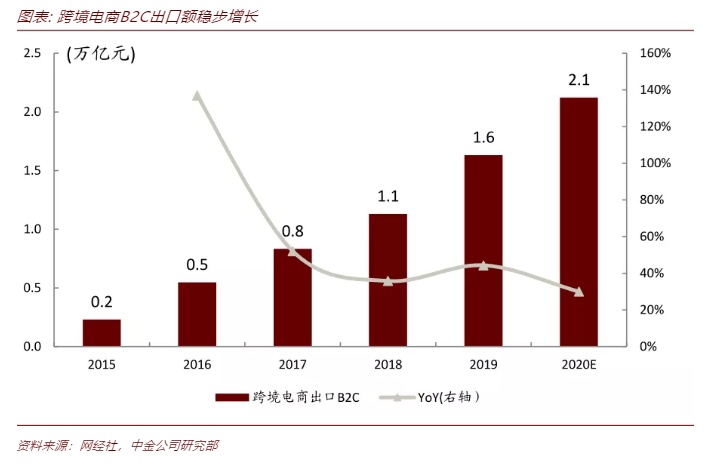 空间:跨境电商步入规模化成长,未来四年有望保持30%的增速