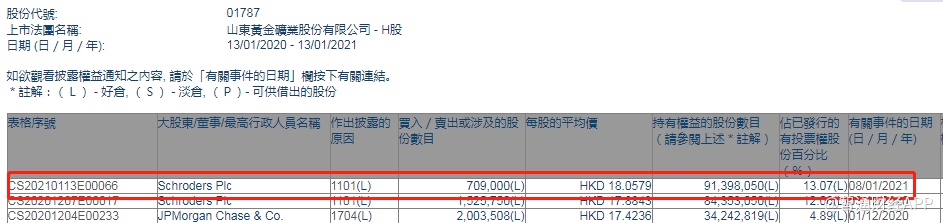 智通财经APP获悉,香港联交所最新资料显示,1月8日,施罗德增持山东黄金(01787)70.9万股,每股作价18.0579港元,总金额约为1280.31万港元。增持后最新持股数目约为9139.81万股,最新持股比例为13.07%。