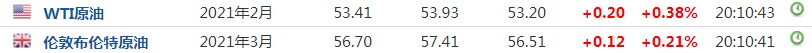 截至发稿,WTI原油涨0.38%,报53.41美元/桶。布伦特原油涨0.21%,报56.70美元/桶。