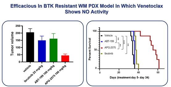 同时,杨大俊博士还指出,临床前数据显示,APG-2575在BTK耐药、Venetoclax 无效的WM PDX模型中显示良好的抑制肿瘤效果。这为APG-2575临床适应症的进一步探索提供了基础,显示较大潜力。