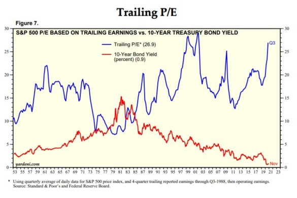 标普500指数市盈率逼近2000年的30倍高位,同时亦远高于过去十年平均数值15.8倍,股市估值颇高。当然高市盈率不代表跌。