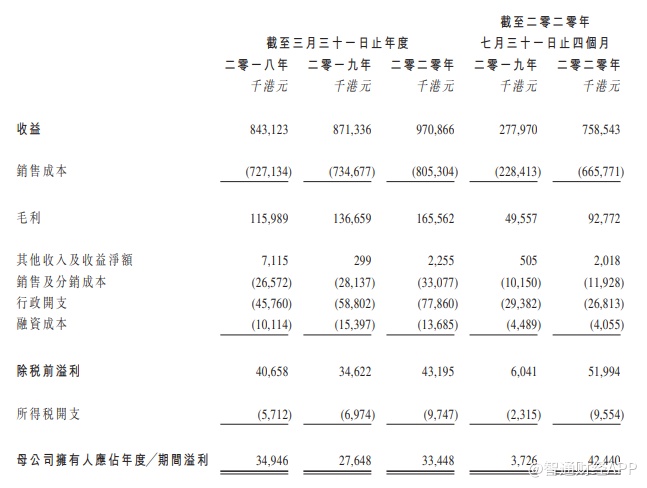 招股书显示,截至2018年、2019年及2020年3月31日止年度及2020年7月31日止四个月,环联连讯的收益分別约为8.43亿港元、8.71亿港元、9.71亿港元及7.59亿港元。毛利分别为1.16亿港元、1.37亿港元、1.66亿港元及9277.2万港元;净利分别为3494.6万港元、2764.8万港元、3344.8万港元及4244万港元。